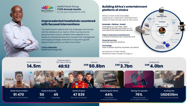 “Our performance reflects both the challenges we’ve faced and the resilience of our teams. While macroeconomic pressures and currency volatility have weighed on our results, our disciplined execution, cost management and investment in new long-term growth opportunities position us well for the future,” says Calvo Mawela, MultiChoice Group CEO.